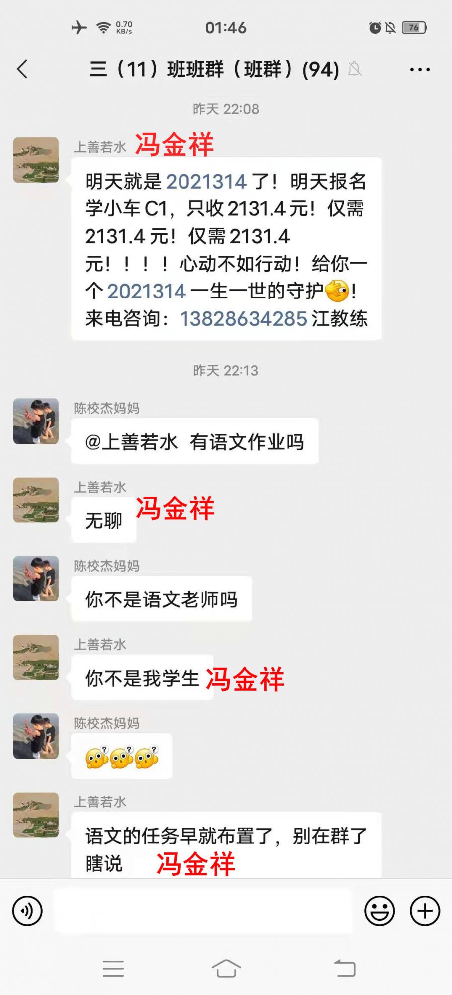 mmabc1 博士生 注册 2011-03-21 消息 1,471 反馈评分 18 点数 61 2021-03-14 #1 这个冯金祥老师在自己的学生家长群里发广告,大家接着往下看就明白他是多么的垃圾了。 这样的老师能教好学生吗? 请电白教育局的领导看一下再回复。