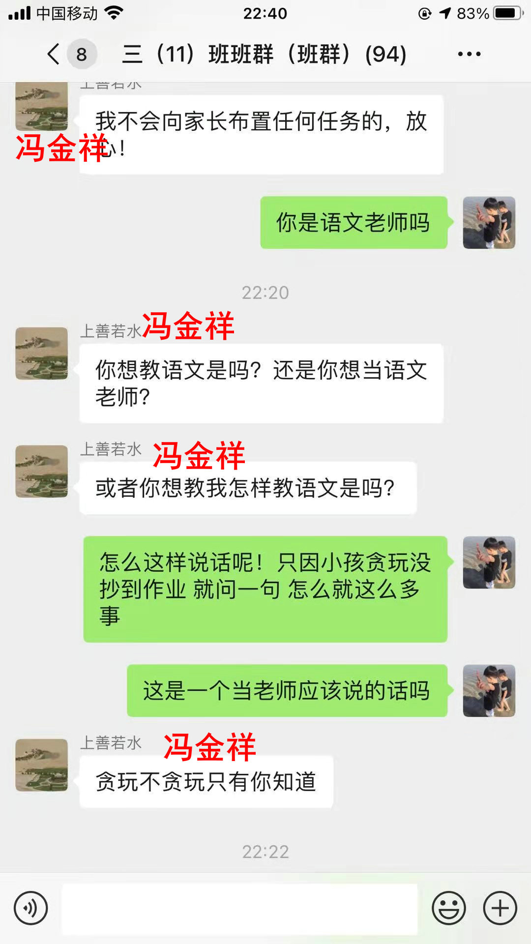 一切都是肛肛开始 小学四年级 注册 2018-11-14 消息 282 反馈评分 94 点数 11 年龄 25 性别 男 2021-03-14 #25 没觉得冯老师有什么错,至少没有看到什么有违教师职业道德的言论。奇葩的是楼主,鸡毛蒜皮的事也上论坛指名道姓地骂街。
