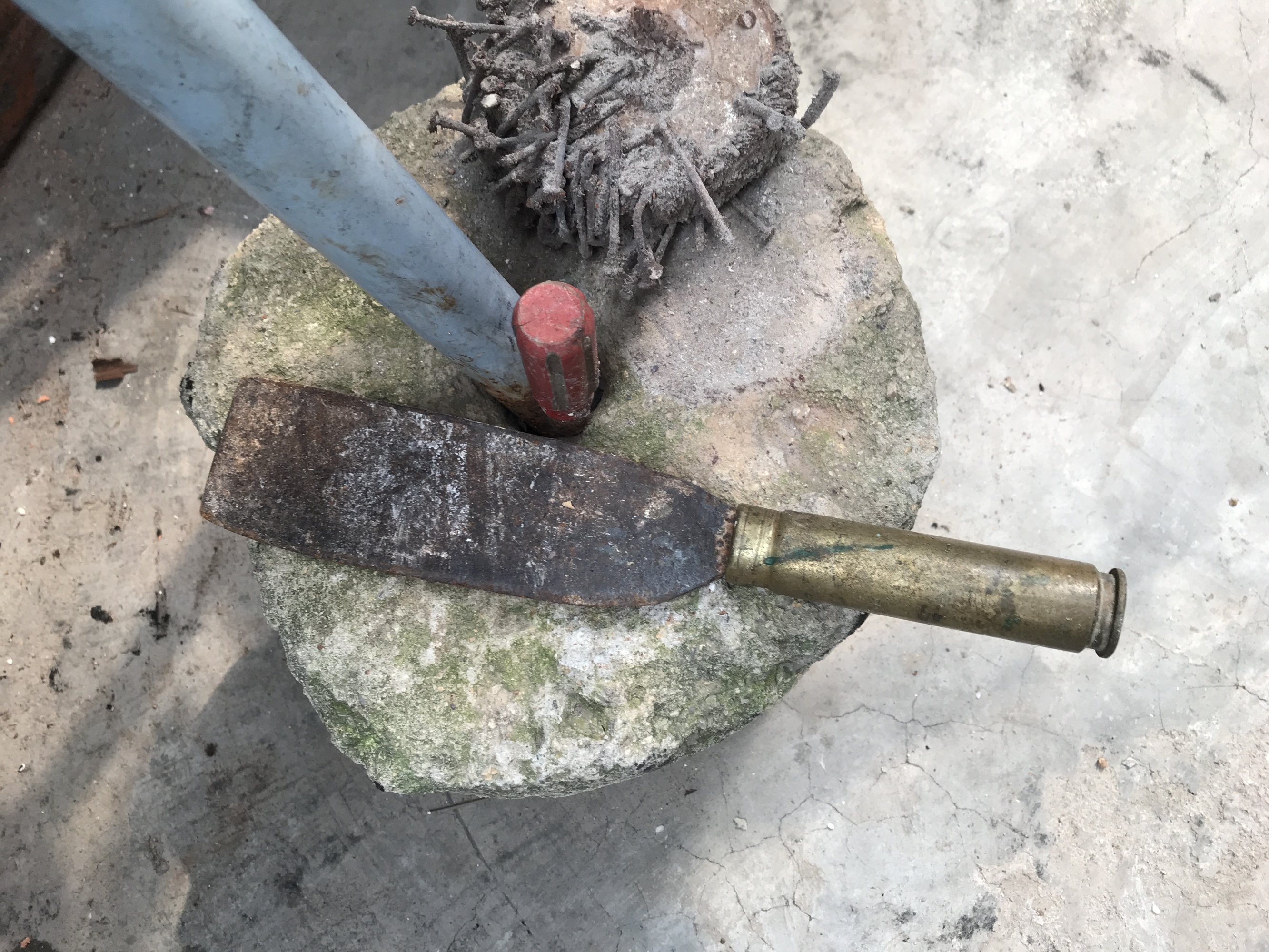 当年带回的弹壳被七婆做成刀柄了
