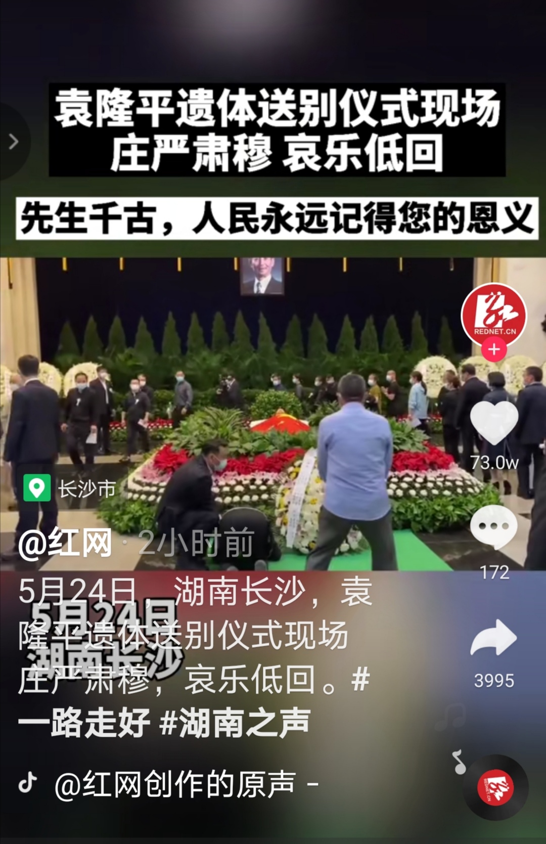 七绝·沉痛哀悼“杂交水稻之父”袁隆平院士 文/汪洋大海 今日全球万众哀, 送辞袁老泪纷来。 稻畴从此无蛙鼓, 因为三更没叟催。