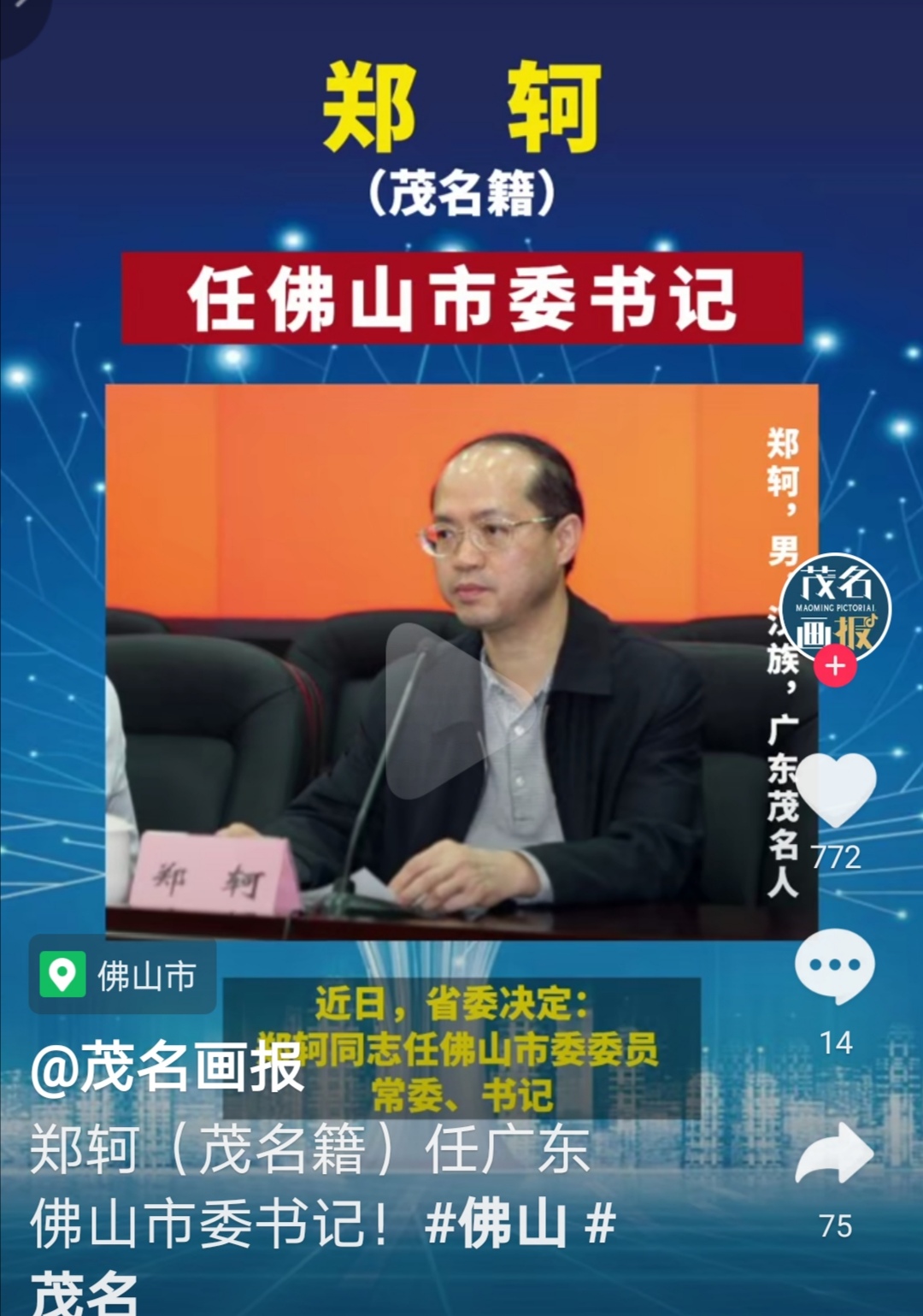 新闻 电白观珠人——深圳市委副书记郑轲,调任佛山市委书记 (1人在浏览)