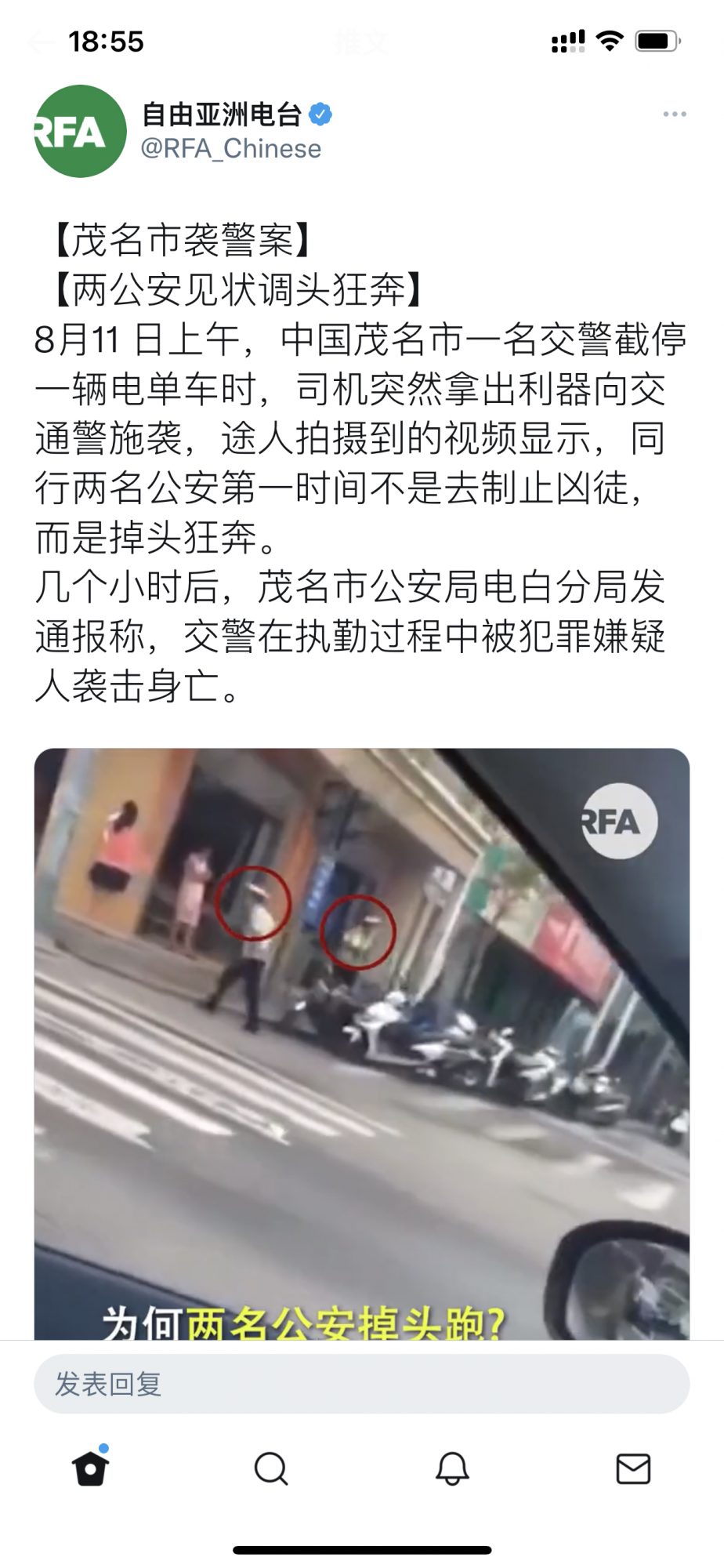 从这方面也可以看到电白公安局的整体执勤能力,平时没有训练,没有预演应急预案,同事出事,其他两个身上没有带任何的防护器,没有采取任何的制止,说明平时他们都是装腔作势,关键时刻才具现出他们的水平一般般,拿着缴税人的钱,领导都是在睡大觉。