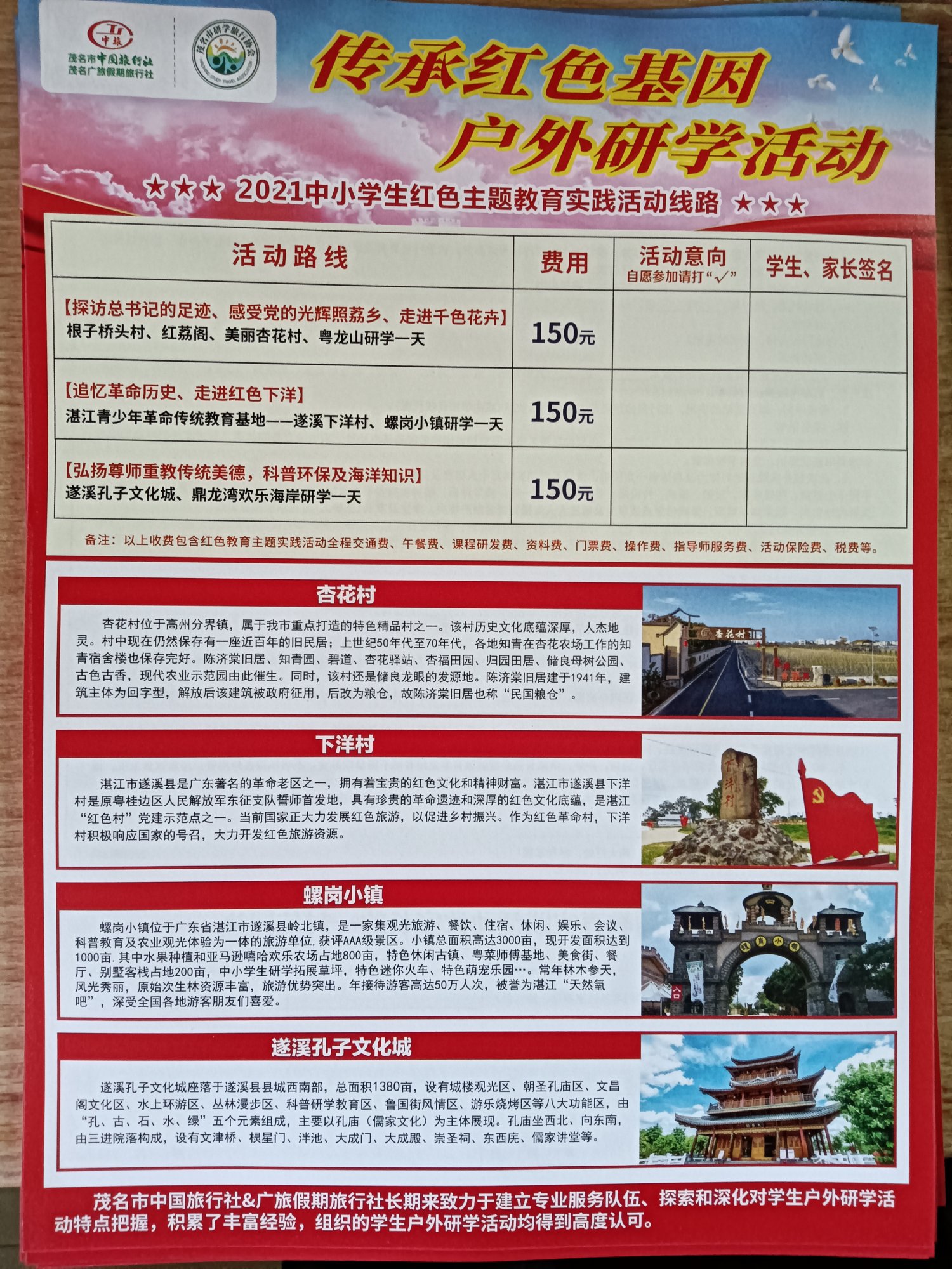 本次活动是班级第一次集体课外实践活动,希望能全体同学参加,这样活动才更有意义,没特殊情况的话尽量参加。报名参加的同学请接龙并填好以下信息表,费用可私发给我。