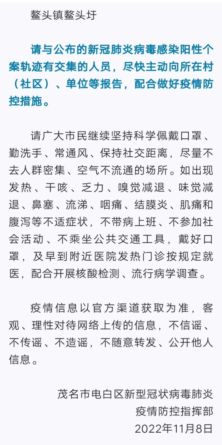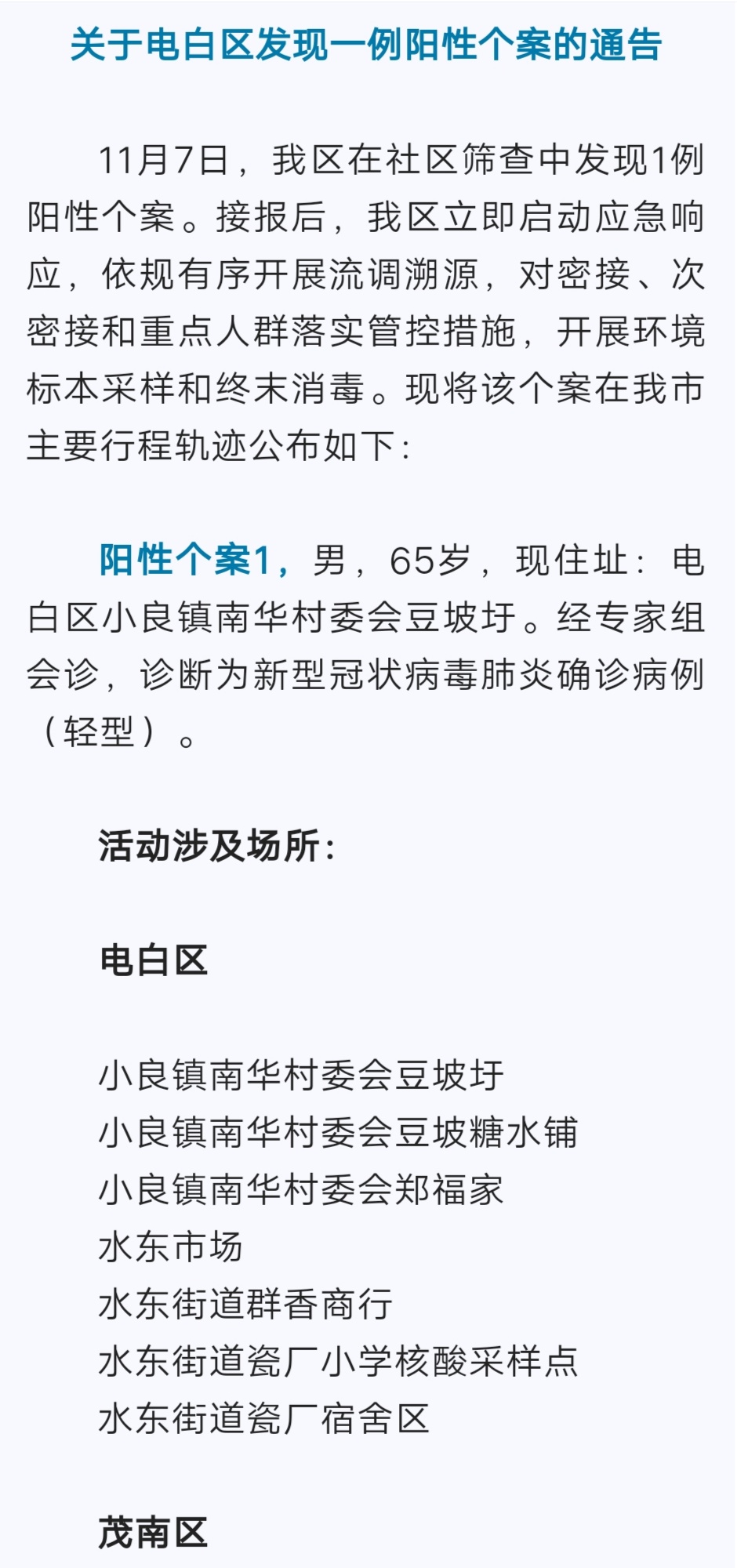 三、低风险区水东街道、电海街道除上述高、中风险区之外的所有区域。小良镇、沙院镇除上述高、中风险区之外的所有区域。