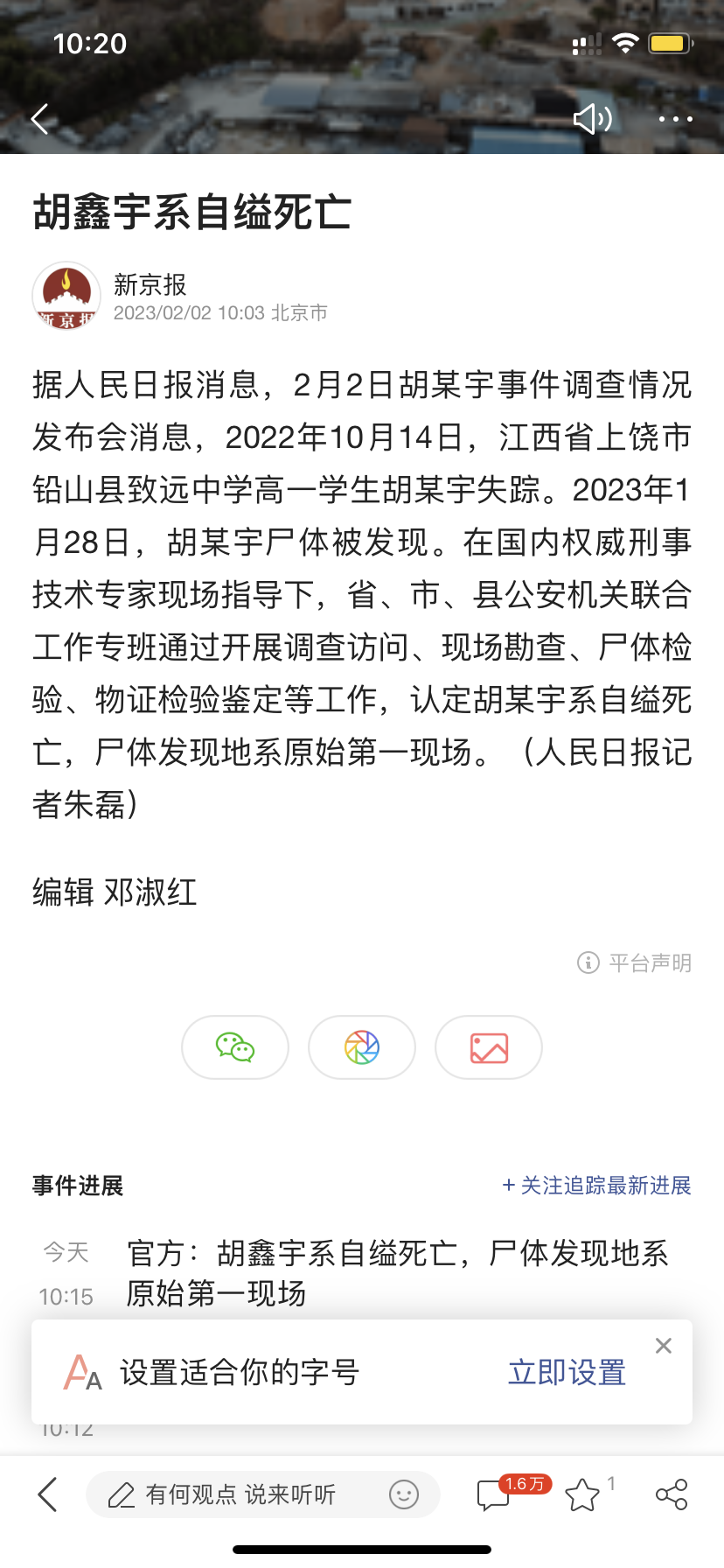 阿 阿玲2005 副教授 注册 2009-03-23 消息 2,104 反馈评分 151 点数 101 2023-02-01 Android Chrome Mobile 100.0.4896.127 #31 cz752 说: 人民网评胡鑫宇死亡事件:举国关注,谁都不敢造假,谁也不能造假 https://c.m.163.com/news/a/HS9IG1I80556123M.html?spss=newsapp&spsnuid=nQM0eUTbftjxu6nigBE5VWfzebMSxlJwJizWb4Nbfpj%2FxZC8y0BPXbm%2FEbu27Q4HjB56bFtBDL8aY36wSD9%2BMQ%3D%3D&spsdevid=34D92F41-2B71-44D8-A723-2A1C44A4F2F1&spsvid=&spsshare=default&spsts=1675047935355&spstoken=L7mfI6DIKaaKNjQwrOErJBSrXdjm1Cfe3Yd1wzbXSWmS3p6BLTVg3kOnhf7aF3M%2FWejDp97IPqkgUV9OM5xmQw%3D%3D 点击展开... 上饶市政府早有定论,自杀身亡,无头案