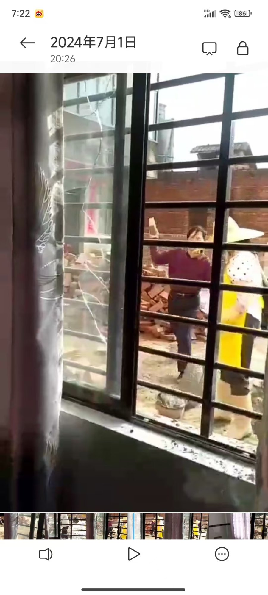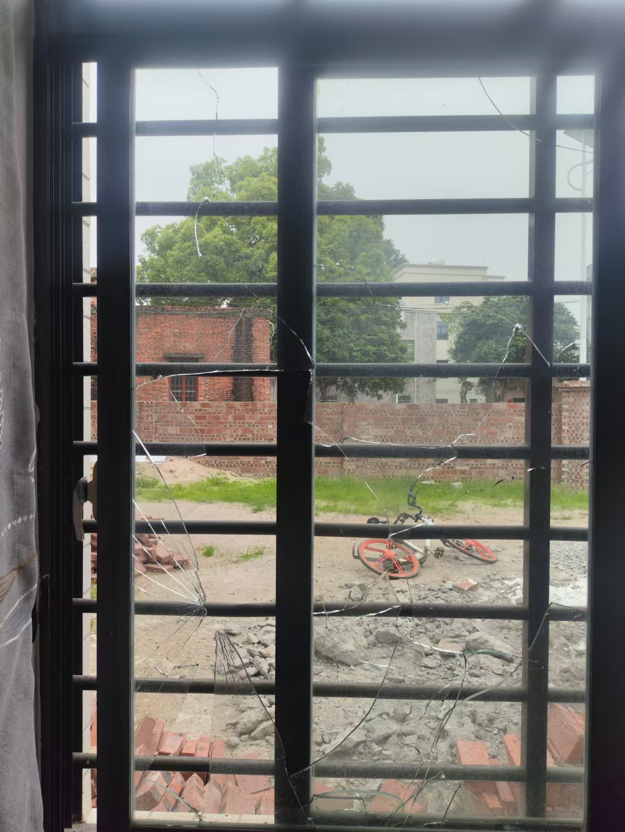 简单说一下,就她和村长老公,霸占公共空间,挖我墙脚建围墙,严重侵犯我房屋采光权,我投诉于城建部门,她的违建被叫停,但城建部门走后,其继续违建,我隔着窗用扁担挑砖,阻止她违建,于是,她和村长老公就凶神恶煞地打砸烂我一楼窗户,并打伤我家人。