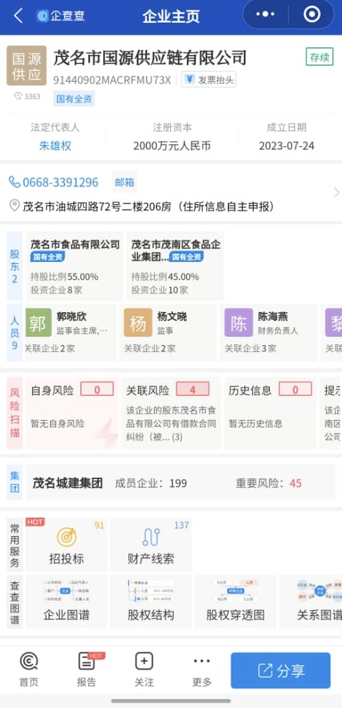 与乐禾勾结的还有一家国营企业:茂名市国源供应链有限公司,在以纪委副书记为首的幕后老板的操控下,将市直学校食材供应垄断中标。