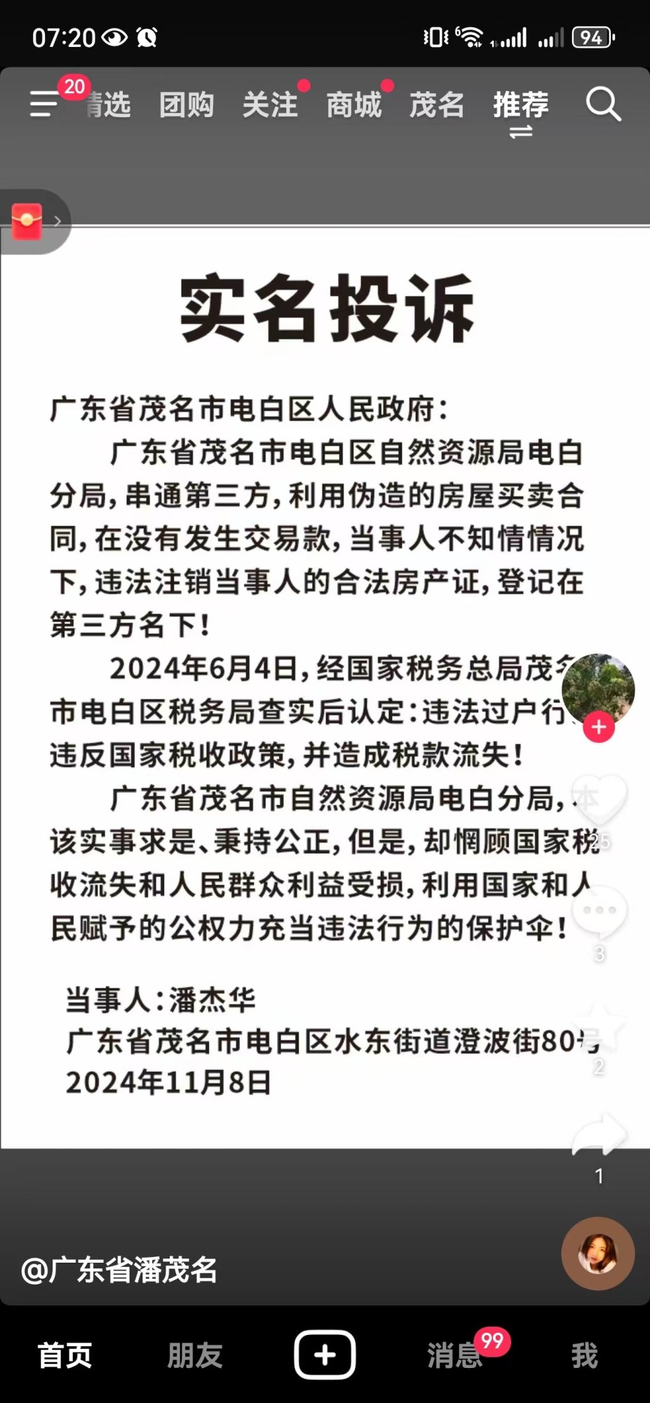 转帖 投诉电白区自然资源局—转自抖音 (1人在浏览)