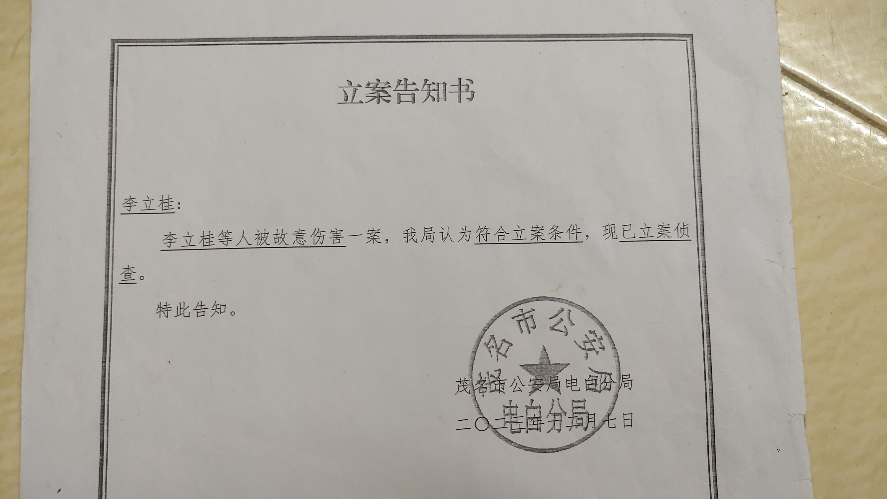 我是受害人李立桂,今年80岁,茂名市电白区人。