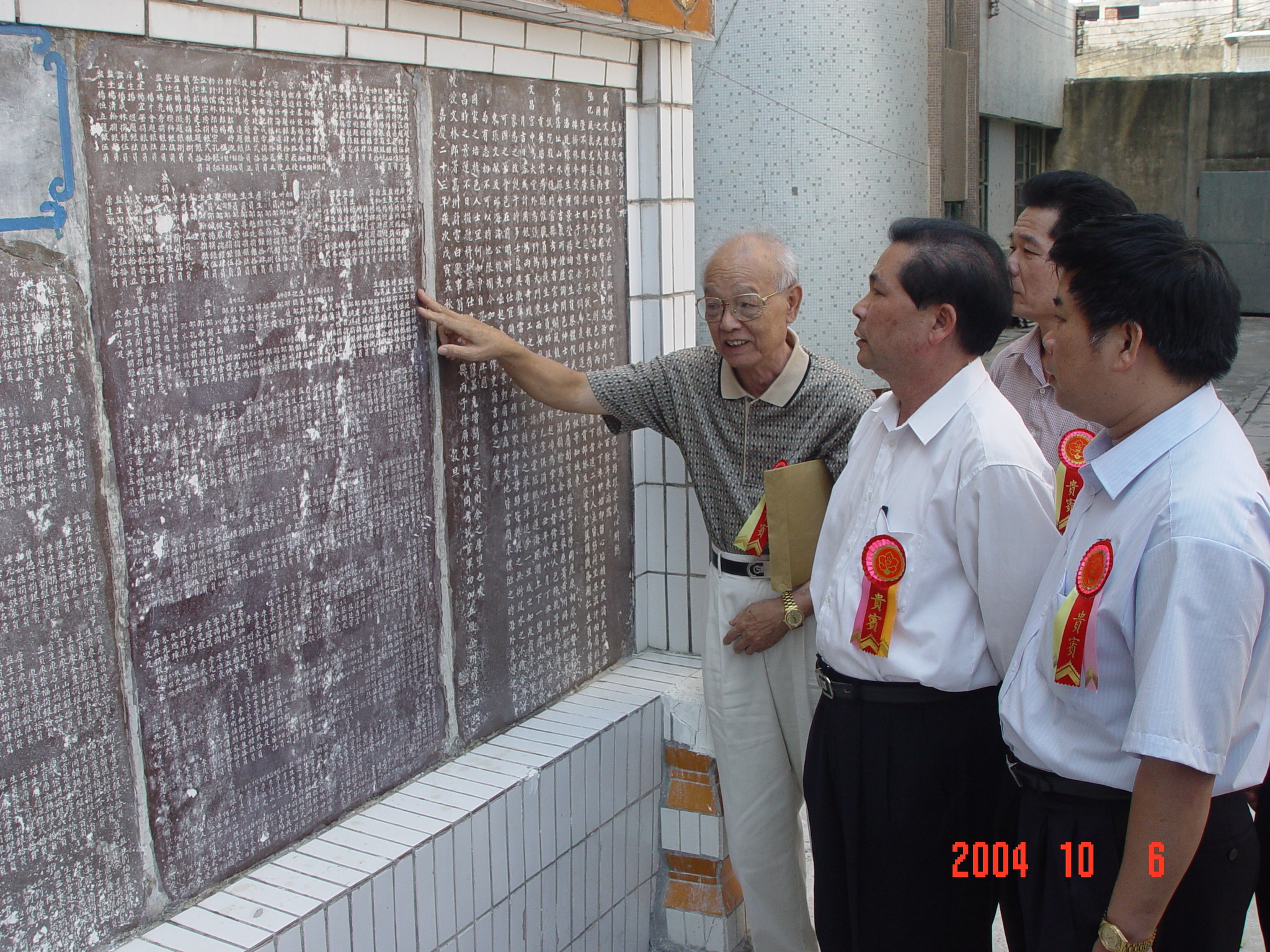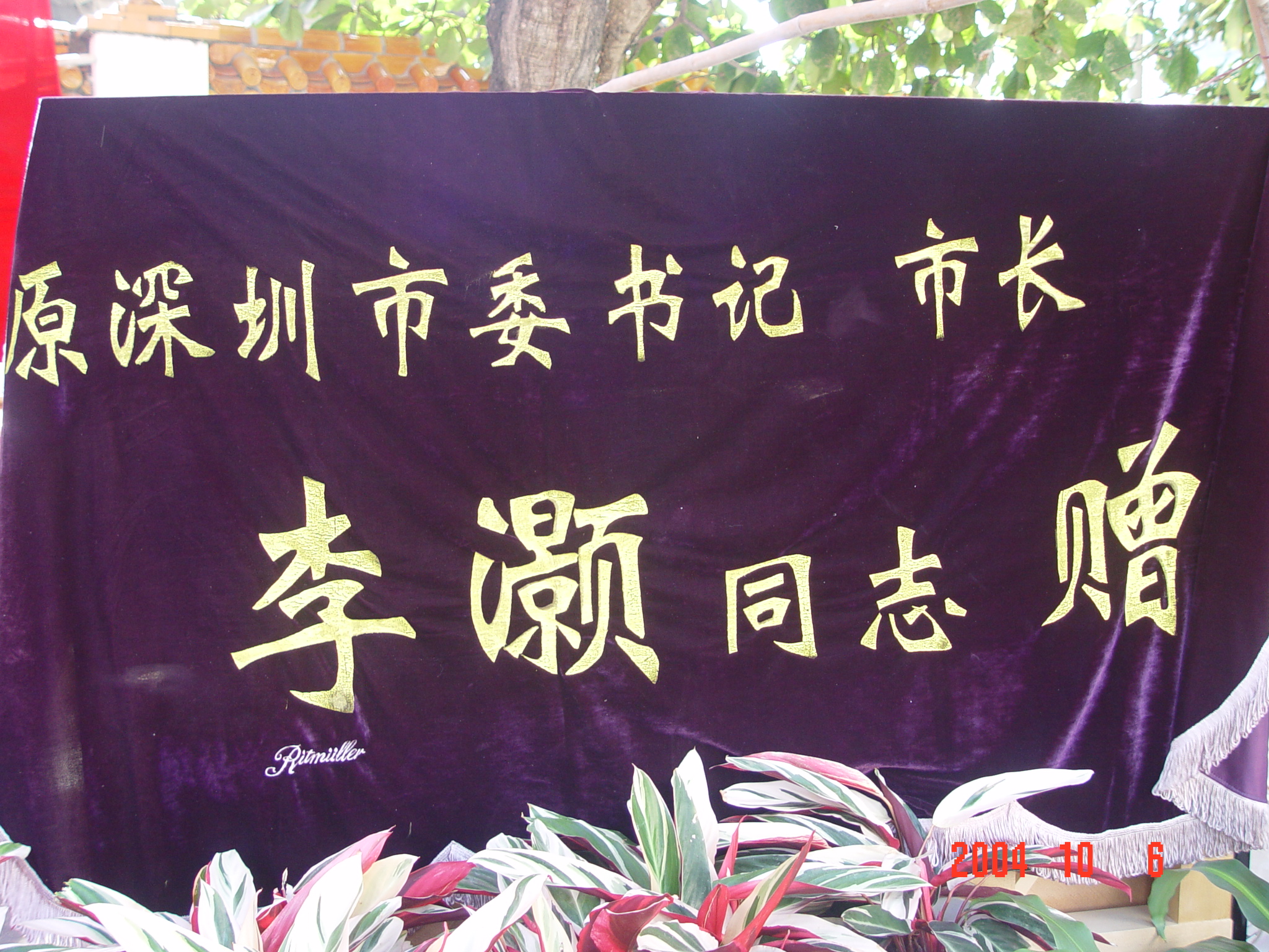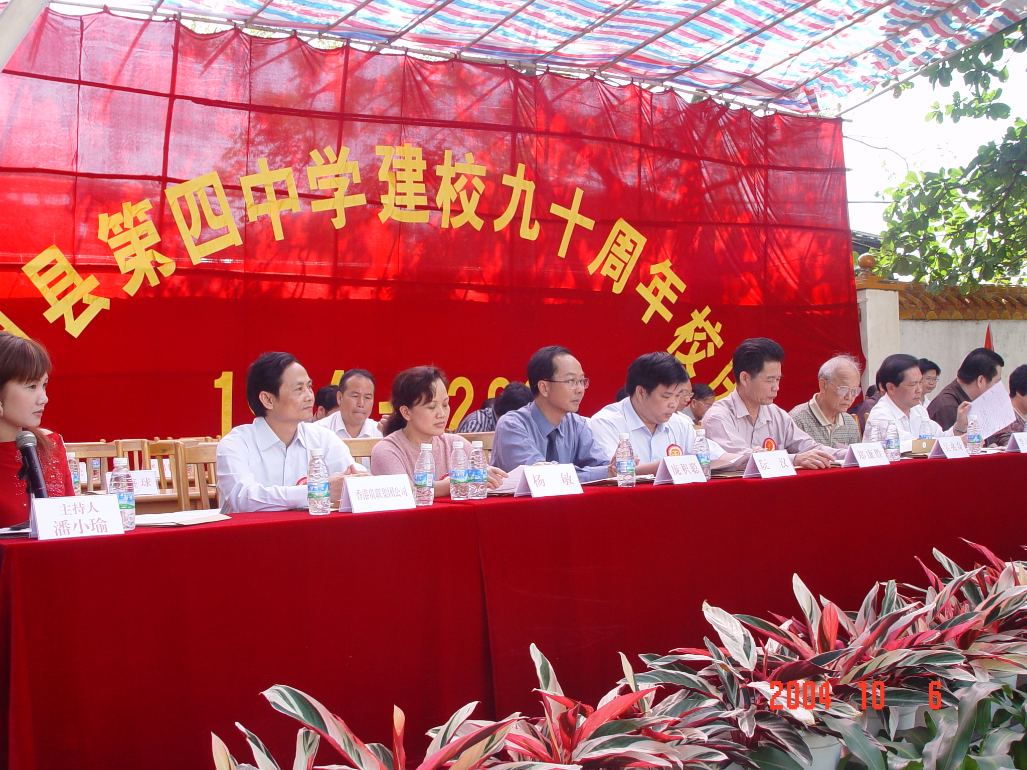 2004年12月5日,在深圳召开的同乡会大会上,吴超成校长颁发纪念品给为母校作出贡献的校友,左起:蔡得、李灏、陈兆东、吴超成。
