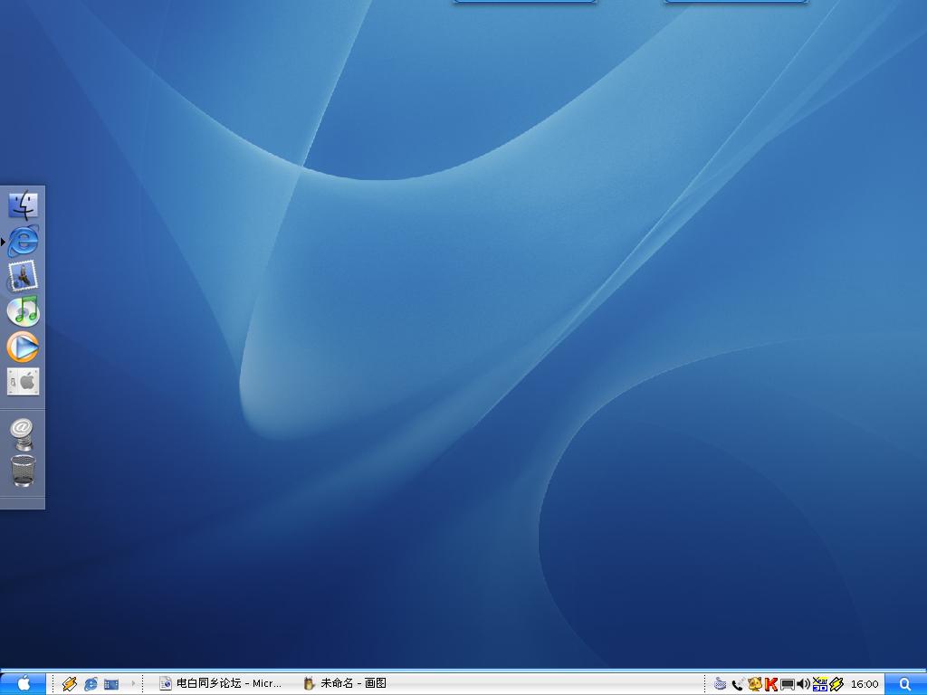楼主,有个问题要问问你哦。 我也是刚刚安装了苹果作主题。 就是发现了一个问题。 怎么我的垃圾桶(回收站)的图标不见啦? 刚用苹果主题的不太习惯。 能告诉我哪找槟歉隼圾桶么? 还有哦,怎么我下面的任务栏跟你的有点不同啊? 你的左右好像比我PP哦!