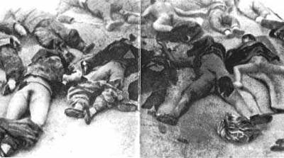 Some of the thousands of corpses burned by the Japanese Imperial Army by the bank of the Yangtze River.
