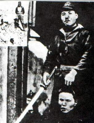 Japan's Imperial Army officer holding a person's head.