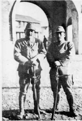 Japan's Imperial Army officer showing the soldiers how to chop off the heads of the Chinese captives