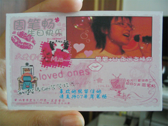 QUOTE(pink @ 2005年07月31日 Sunday, 02:03 PM) 李宇春只是台风不错,但唱歌比不上笔笔好听 [snapback]568929[/snapback] 946 说得好啊