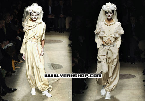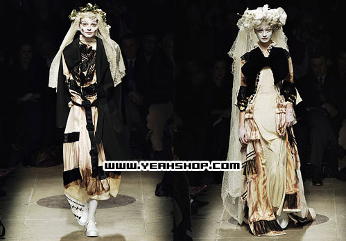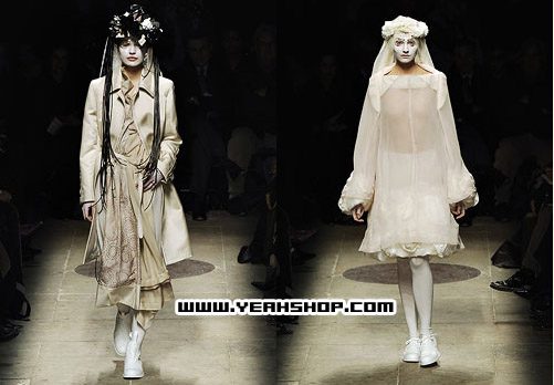 COMME des GARCONS的chief designer就是Under Cover的boss高桥盾,黑色白色及暗色调的颜色一直是他的钟爱,今年秋冬COMME des GARCONS女装以新娘礼服为主题,给人冷,静,一点点的忧伤和压抑来诠释新娘的美丽与哀愁