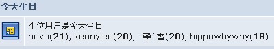 ;'T&氅n 小学五年级 注册 2005-10-02 消息 326 反馈评分 0 点数 1 2005-12-27 #19 路过.. 同一天生日有什么好奇怪的.. 只不过是多几个人和你同一天生日而已...