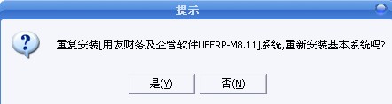 我的用友软件出了问题以后,卸载了再安装,单击“开始安装”之后,系统提示下列信息:“本机已经安装[用友财务及企管软件UFERP-M8.11]系统,继续安装吗?”单击“是”,系统显示下列信息:“重复安装[用友财务及企管软件UFERP-M8.11]系统,重新安装基本系统吗?”单击“是”之后,系统进入安装界面,本来可以改变安装路径的按纽呈灰色显示,如下图所示。不可改变软件的安装路径了。以前第一次安装用友时是可以改变路径了。如果采用默认路径来继续安装的话,完毕重启系统之后,卸载前出现的用友问题依然存在。哪位大哥、大姐能把小弟从痛苦中解救出来呀。小弟不胜感激,在线等待。