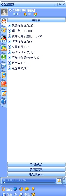 N Nicotine〓蝙蝠 VIP会员 注册 2004-11-26 消息 4,499 反馈评分 0 点数 61 2005-03-22 #109 QUOTE([ @ 2005年03月22日 Tuesday, 11:21 AM) 老大 不好意思 比你高一级 哈哈``` [snapback]279678[/snapback] 变态的。是不是腾讯公司出品的QQ 啊?