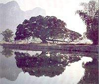 我县的母亲河―龙津溪的两岸,也生长着多株历尽沧桑的老榕树。或与高大威猛的木棉树并肩雄峙,或傲然卓立于万竿修篁之中。当木棉花开的时候,一树繁花,灿若丹霞,老榕、翠竹、红花,真是美得让人惊叹不已、为之痴迷。这些榕树,可能由于生长于溪边,水分充足,并无龙钟老态,而是生机无限。早先时候,龙津溪是重要的水上通道,帆影翩翩,渔歌抑扬。老榕树就象惦念儿女的父母,痴望着来往穿梭的船只。数不清的白鹭在老榕树上筑巢,清晨时分,万翼凌空,那御风飞翔的白鹭,轻轻落在沙滩上,在那里梳栉白得耀眼的美丽羽毛,或从清水中叼起摆尾挣扎的鱼儿,老榕树披着一身霞光,雍容华贵,仪态万方。暮色苍茫时,老榕树上归鸟云集,喧腾欢鸣,粗大的树根上系着随波起伏的扁舟。蝉无休无止地叫,江风一阵一阵地吹,夜色渐浓,树旁的幽篁中萤火飘飘,溪流中渔灯闪烁,老榕树的巨大身影在月色星辉中依稀可见,凛凛生威,让人肃然起敬。