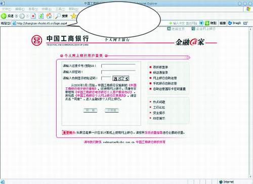正规的网上银行和大型交易网站都有对使用安全信息的加密措施准彝ü分析发现该仿冒工行网站有三处明显漏洞: