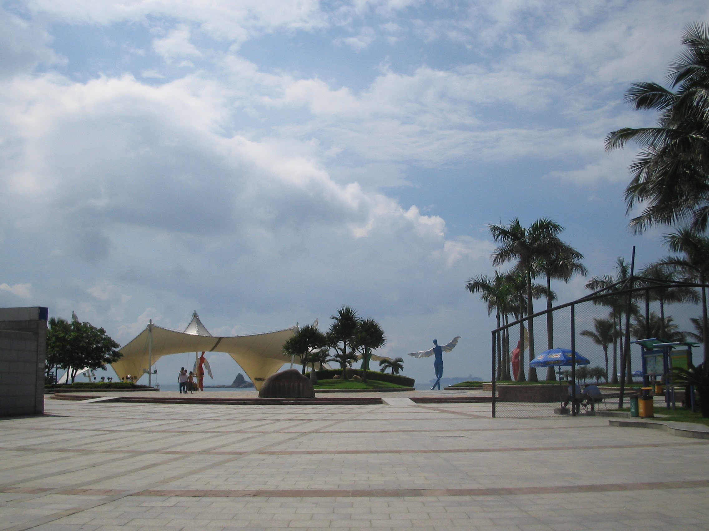 深圳市大梅沙海滨公园于1999年6月18日隆重落成。它作为深圳市99年度为民办十件实事之一,免费向公众开放。 大梅沙海滨公园由英国Atkins顾问公司规划设计,整个公园充分考虑屏山傍海的自然景观优势,形成了由山到海逐渐过渡的景观层次。成功地利用大梅沙背山面海的自然条件,把山景引向海边,把海景引向山体,让蓝天、白云、红朝霞与夕照,都能成为优美旋律中最动人的一个主题。椰树林立花草群艳的大小广场、绿荫冠盖的观景长廊、法国枇杷掩映着的草坪停车场、造型美观各异如朵朵白云般的张拉膜、1800米的金色沙滩、自然清新的空气,一派浓郁的亚热带海滨风光。大梅沙公园必将成为一个集休闲度假、观光旅游、运动娱乐为一体的旅游胜地。