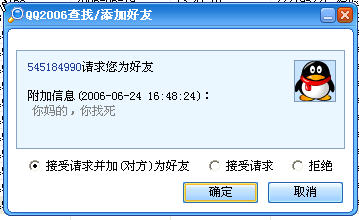 今天有人在QQ上通过QQ好友验证功能给我发送信息,详细内容见抓图: