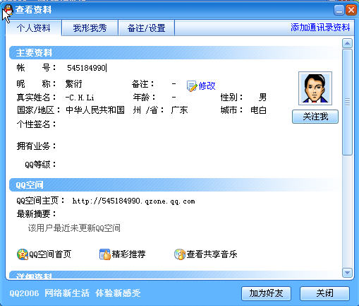 对方QQ资料: