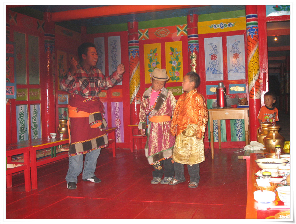 到藏民家烤全羊: [attachmentid=90562] [attachmentid=90566] [attachmentid=90560] [attachmentid=90561] 我们的队长和藏族女人合影: [attachmentid=90563] 藏民家内部: [attachmentid=90564] 藏民一家大小表演节目: [attachmentid=90565]