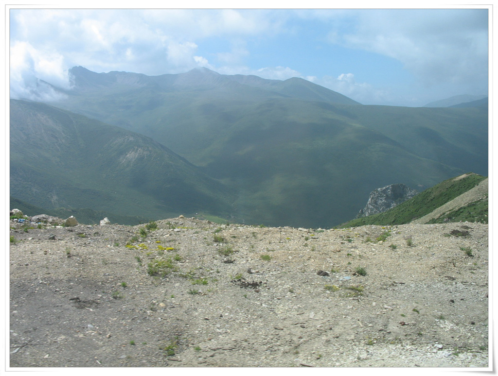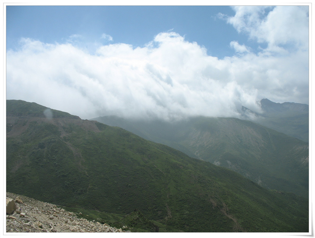 车继续开往黄龙,要跨过海拔4500米的高山,车就像在天上走,驶入云霄。