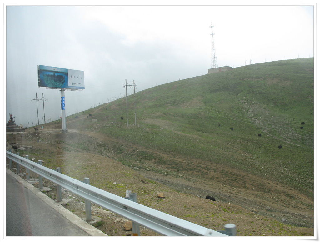 车驶过的最高点,海拔4500米,中国农业银行树了一个广告牌在此: