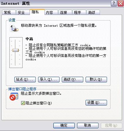 打开 IE--属性--隐私--阻止弹出窗口[attachmentid=94485]
