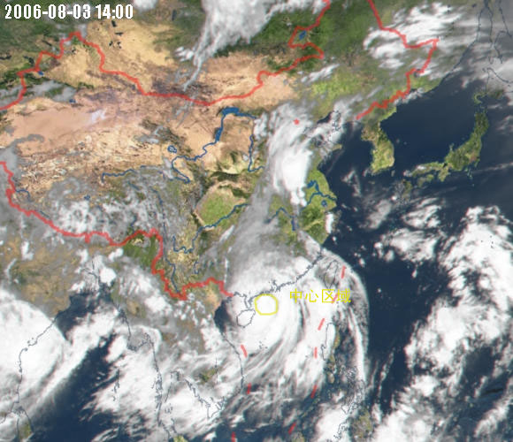 该云图中,海南岛东北方电白东南方有一团特别白的,呈圆形的云团,那就是台风中心。