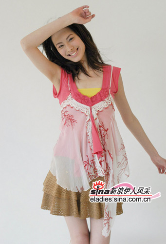 镂空卡其色短裙若隐若现让人浮想联翩,轻柔的白色雪纺在身体间飘逸,粉红色与蕾丝加入甜蜜味道。