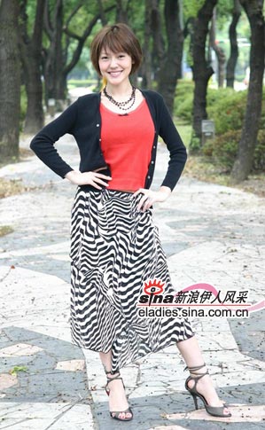 黑白配的经典条纹长裙突显高贵和成熟女性的活力,搭配单色上装才能出彩,黑色开衫与红色吊带的组合魅惑力极强。