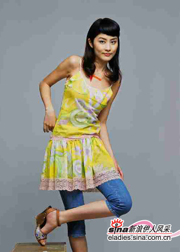 分牛仔裤平淡如水,有了摩登的楔底鞋和色彩欢快的雪纺吊带裙搭配,再加入花朵图案和蕾丝,混搭的效果异常特别。