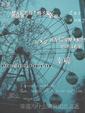 @papa* 披着企鹅皮的猪Ю企鹅猪 荣誉会员 注册 2005-02-24 消息 22,534 反馈评分 0 点数 61 2006-08-04 #7 摩天轮..... 想去游乐园好久了 却一直没去成 遗憾 伤心 难过