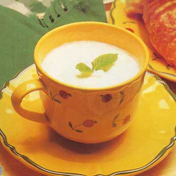 稍加一点盐,会提起牛奶的纯甜味。端起有把儿咖啡杯喝这种咖啡啡,全身都会暖和起来。