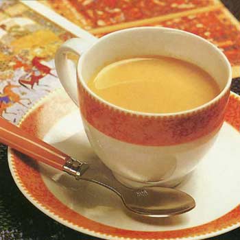配制方法:在奶盆里倒入研细的深煎炒咖啡和肉桂等香料,搅拌均匀,然后倒入锅里,加些水煮沸3次,从火上拿下。