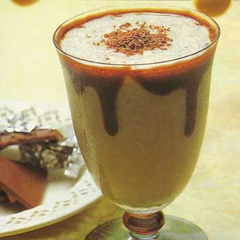 配制方法:在搅拌器里加入冰冻咖啡、巧克力糖浆20毫升、香蕉2只、牛奶40毫升,充分搅拌,倒入盛有咖啡冰块的玻璃杯。若想再甜一些,可加些焦糖蜜。 [attachmentid=95288]