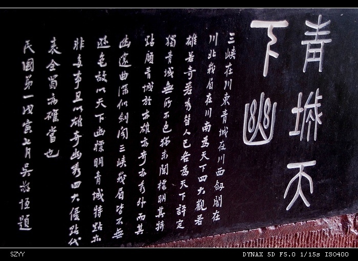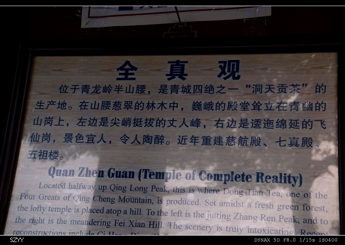 推土机 荣誉会员 荣誉会员 注册 2004-11-28 消息 2,034 反馈评分 0 点数 61 2006-10-09 #1 道教名山青城山离都江堰实在是太近了――比我想像要近的多。游完都江堰已经到了下午,一打听,到青城山很近,打的是16元还是30元,我记不清了,反正当时的感觉就是不贵。于是跟同伴二人一起打的直接赶到青城山,在山下找到一家农家乐,一间双人房带卫生间70元/天,包吃住。 [attachmentid=103839] 附件 PICT1182.jpg 195.3 KB · 查看: 367