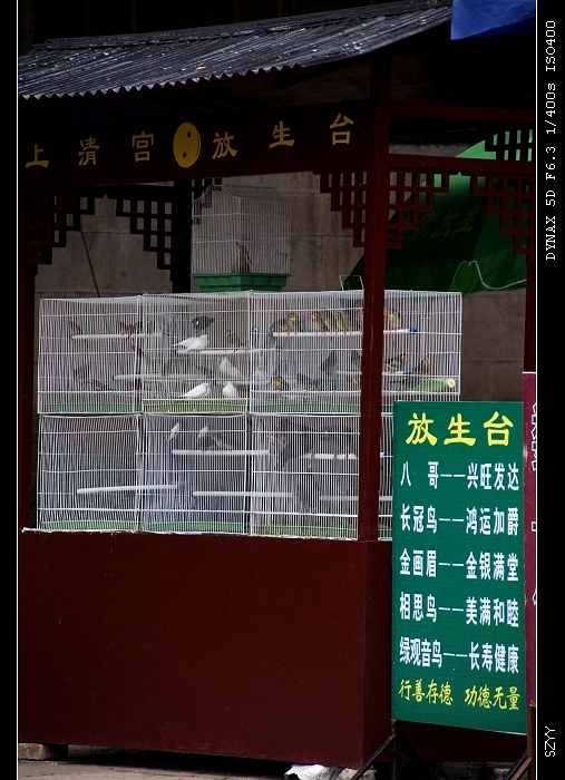 推土机 荣誉会员 荣誉会员 注册 2004-11-28 消息 2,034 反馈评分 0 点数 61 2006-10-09 #46 在上清宫外看到不少小鸟被关在笼子里,花一定的钱可以买不同的鸟"放生",所谓的"放生"其实是残害鸟类.出家人这种做法让人看了很不以为然. [attachmentid=103977] 附件 PICT1409_nEO_IMG.jpg 184.8 KB · 查看: 252