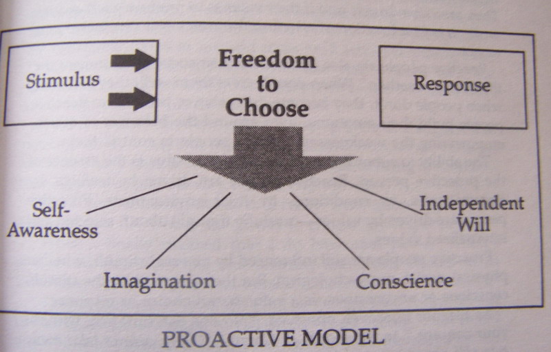 在刺激与反应之间,我们有选择的自由,这种自由是天生的和外人不能干预的。