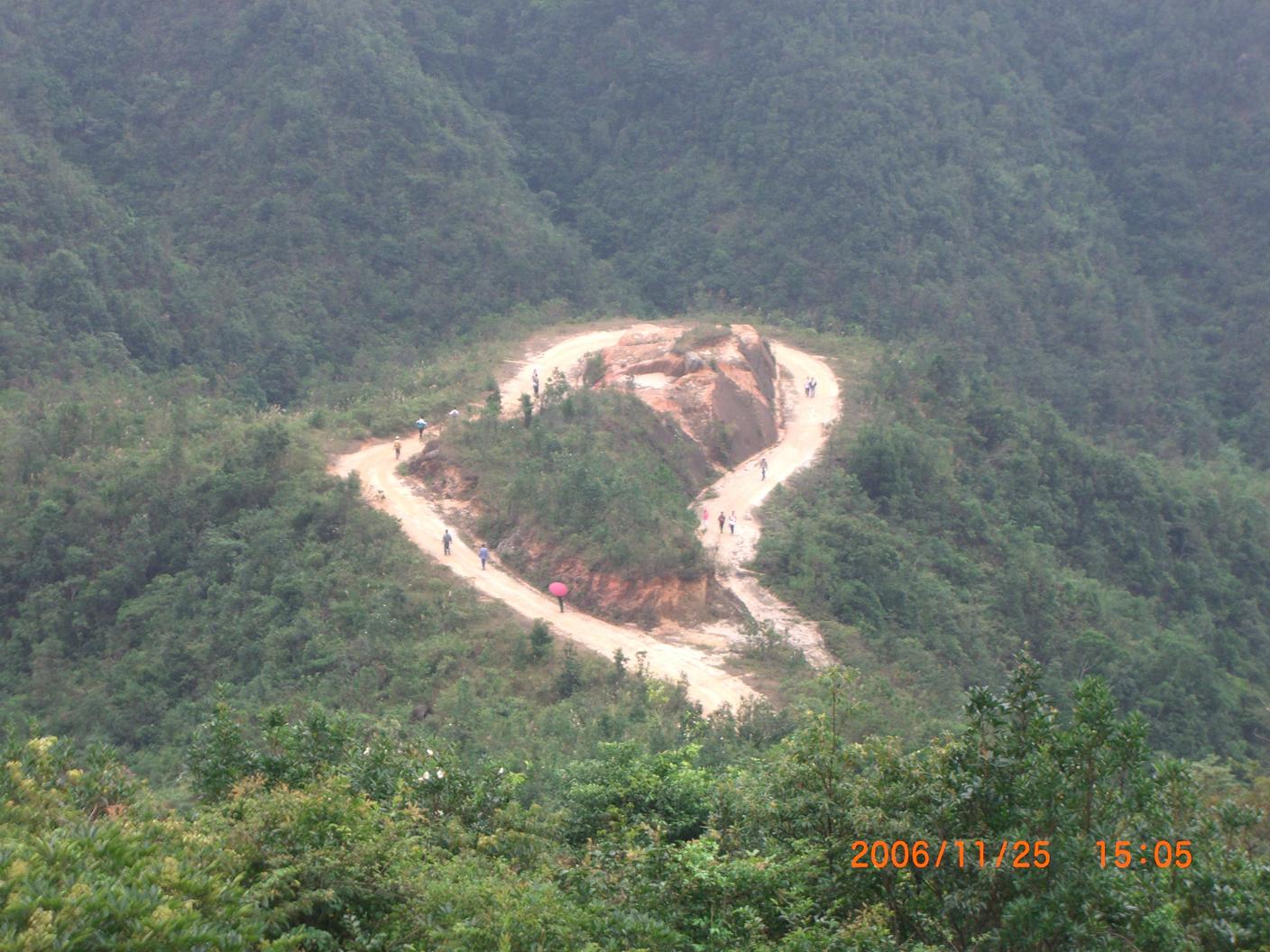 过里联桥后上坡,遇到叉路走左叉路(往右走就过里平了),往前走就是上鹅凰嶂的路了,中途会有一道闸门,为河尾山林场所设,故进山前最好先与河尾山林场打个招呼。