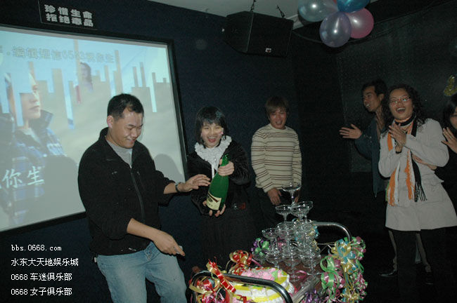 现将镜头转到房间,恰好是网友潇零MM的生日,在大天地工作人员的安排布置下,特把房间装扮成生日房间,同时送上蛋糕及香摈一瓶及水果等....