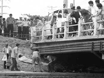 “担架!”一名叫白玉的男医生向桥上的急救车喊了一嗓子。