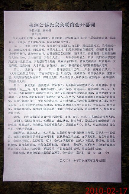 广西玉林地区蔡氏宗祠庆典于2013年1月19日(r咽二月初八日)上午8时开始。