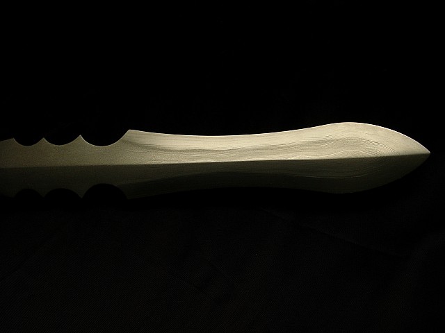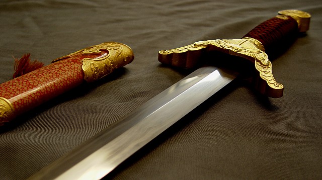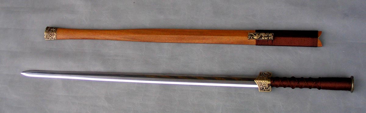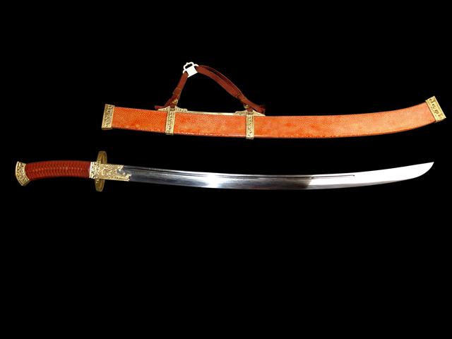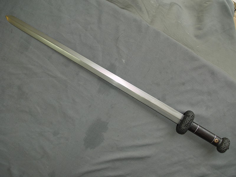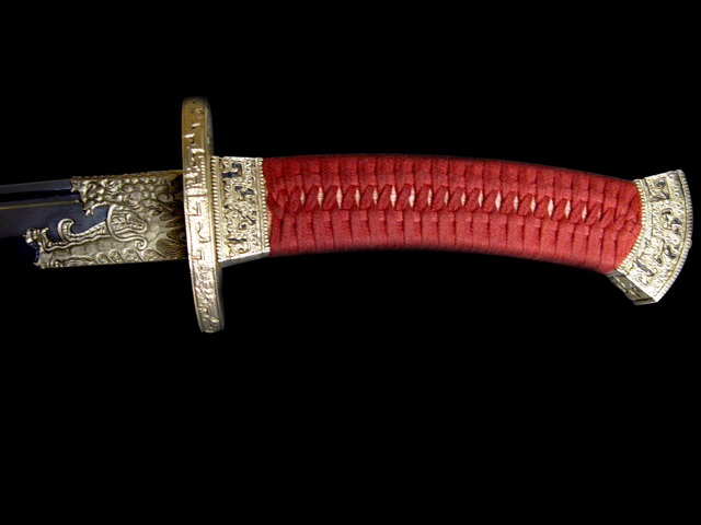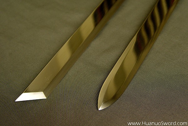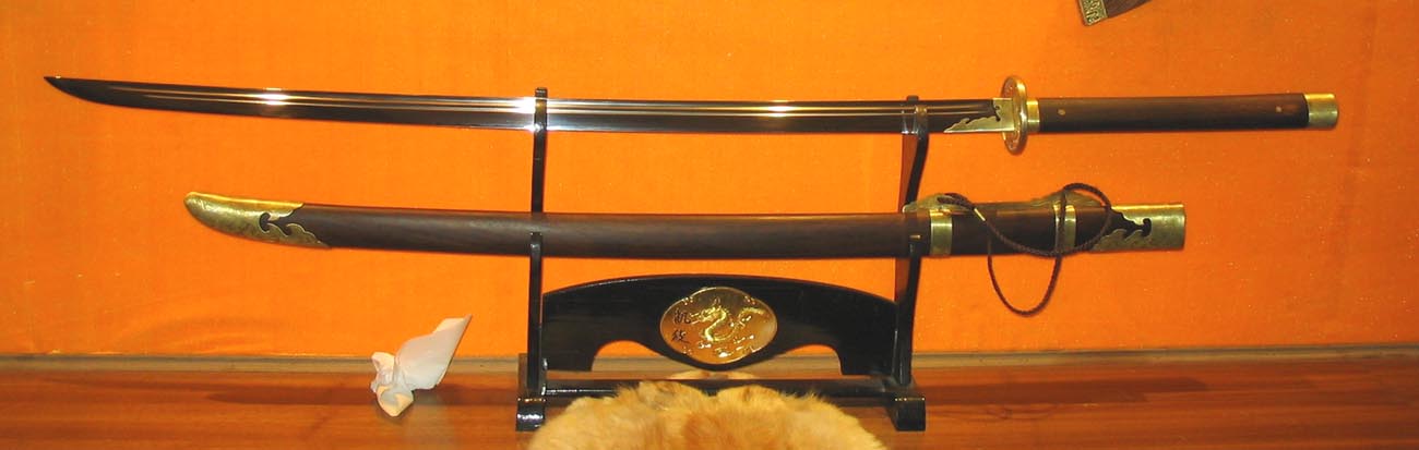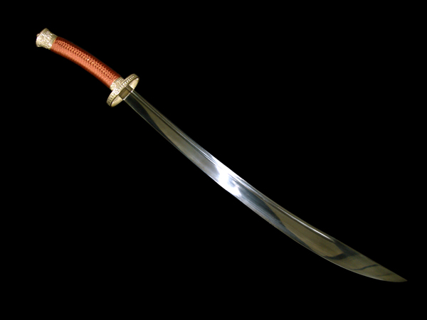 现代做的古法纯手工冷兵器,虽说不能削铁如泥,但削竹如泥是不成问题的.每一把刀剑都经过上万次的折叠煅打,是真正传说中的神兵利器.当然每把的造价也不低,看师傅的名气与手工而不等,基本上都中5000至10000多不等,目前国内的名家有"欧冶""竹本"等人~~~ 1.柳叶刀(雁翔刀)