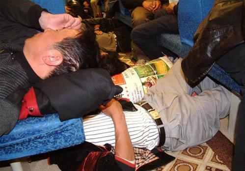 春运列车上的超强睡姿(组图) (1人在浏览)
