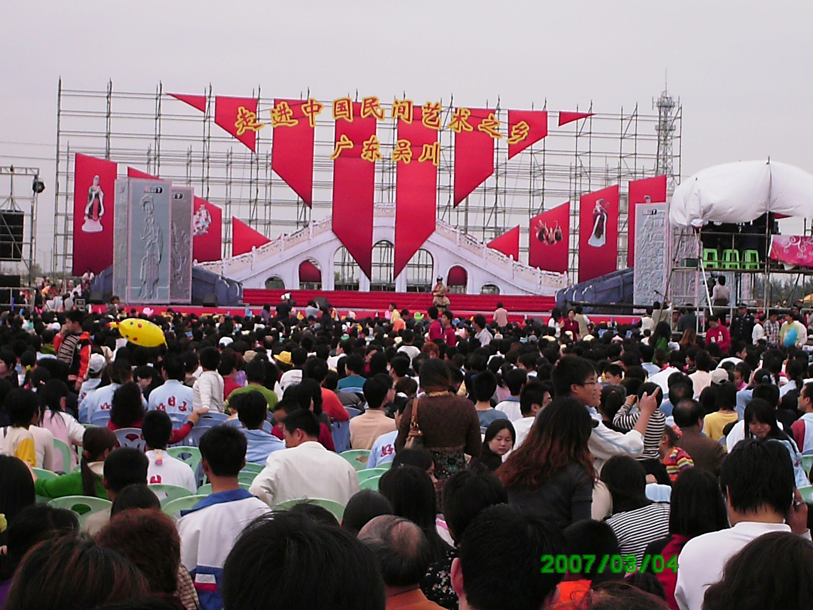 电白最后一个猛男 学前班 注册 2007-03-02 消息 36 反馈评分 0 点数 0 2007-03-07 #1 元宵节当天,吴川的一个运动场上人山人海,热闹非凡,原来是中央电视台在这是搞一个“走进民间艺术之乡”的大型节目,其中有多位著名歌手上台演唱了歌曲(谢军等)。只可惜我不会上传照片,望各位赐教!